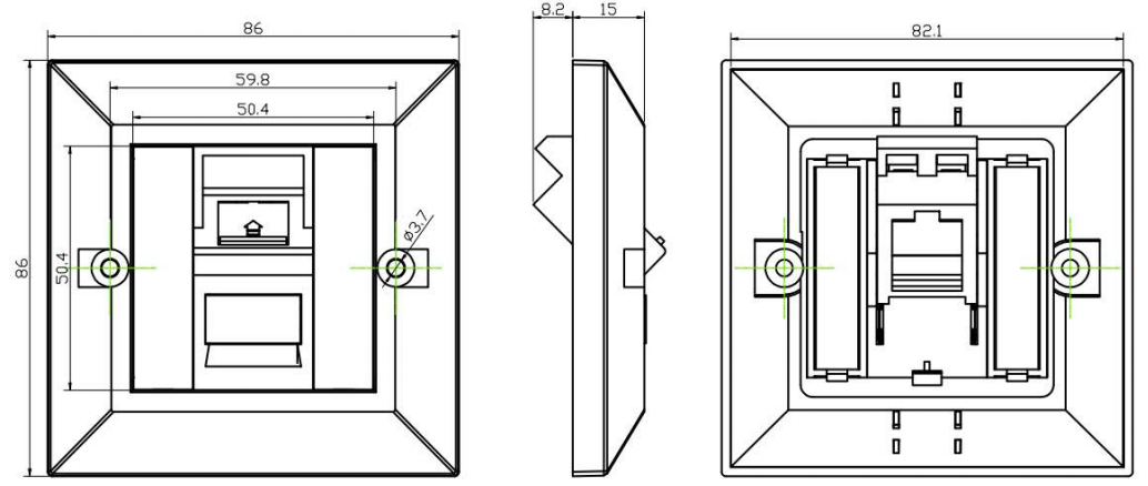Keystone Jacks: Keystone Jacks är modulanslutningar som passar in i väggplattor, patchpaneler eller ytmonterade lådor. De tillhandahåller en anslutningspunkt för kopparkablar och används vanligtvis för nätverksuttag i kontor, konferensrum och bostadsapplikationer.